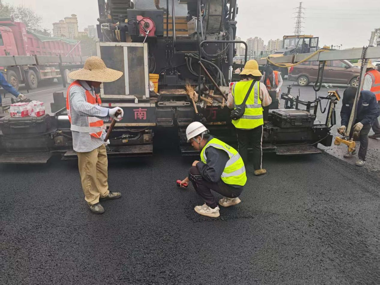 遠達國際項目團隊始終堅守“嚴格管理、優質服務、公正科學、廉潔自律”的工作準則,全程筑牢工程質量防線。在瀝青鋪設施工階段,提前審核施工方案,對改性瀝青、集料等原材料實行100%見證取樣送檢,確保各項指標完全符合設計規范;在施工過程中,采用旁站監督與平行檢驗相結合的方式,密切關注攤鋪溫度、碾壓遍數、路面平整度等關鍵工序,及時糾正施工偏差;針對土方平整與道路路基銜接的薄弱環節,強化沉降觀測與壓實度檢測,保障道路結構的穩定性。瀝青路面選用高粘性改性材料,具備抗壓耐磨、低噪音等諸多優勢,能夠滿足園區產業運輸和日常通行的雙重需求。